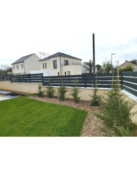 Cette clôture est à la fois robuste, élégante et résistante aux intempéries. Elle est l’un de nos modèles les plus populaires, offrant une protection optimale pour votre propriété tout en ajoutant une touche de modernité.