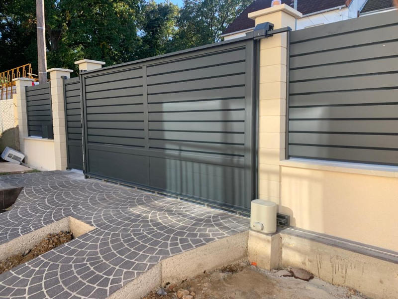 Nos clients ont opté pour un ensemble Portail, Clôture, Garde corps en aluminium avec boîte aux lettres et Visiophone.Les modèles choisis de la marque CADIOU sont :