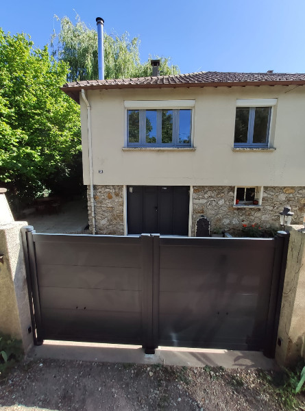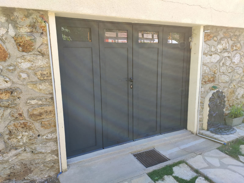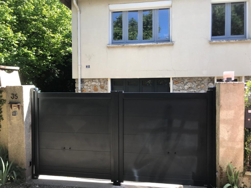 Portail battant motorisé et Porte de garage en aluminium avec vitrage intégré