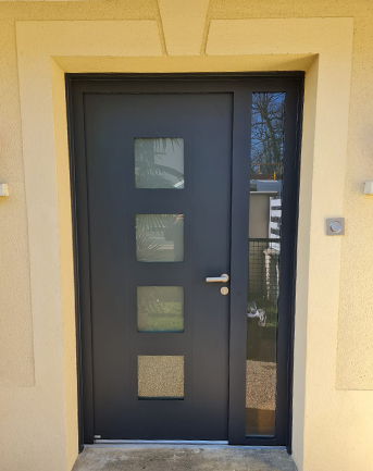 Porte d’entrée Aluminium, contemporaine petit vitrage.