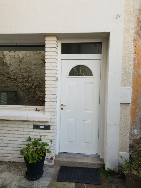 Cette porte d’entrée traditionnelle avec son vitrage souligné de petits bois laiton est parfaite pour donner du style à votre entrée.