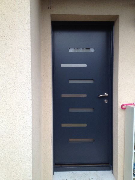 Porte d’entrée en aluminium extérieur et bois intérieur en essonne