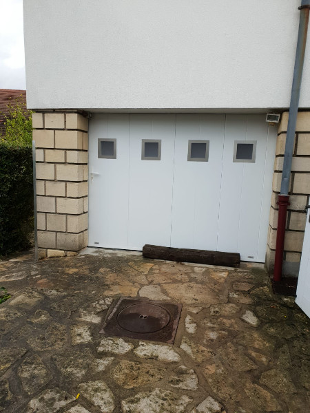 Porte sectionnelle latérale avec hublots et portillon pivotant