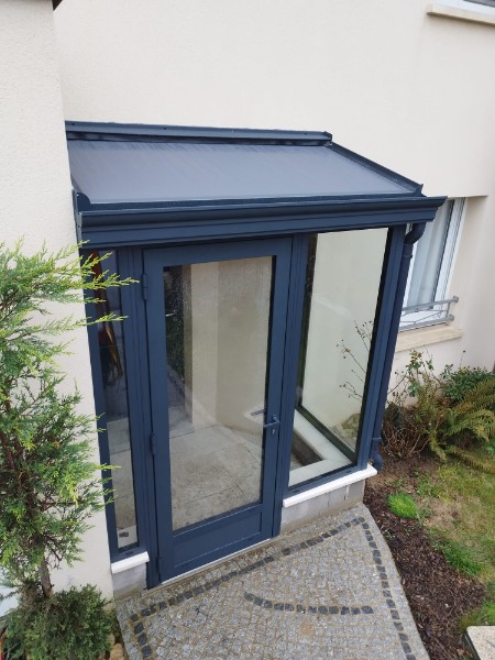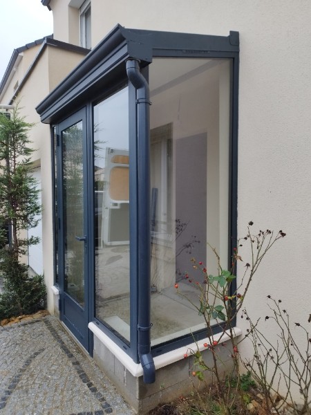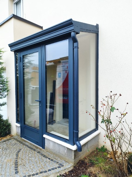Sas d’entrée en aluminium Gris Anthracite fabriquée sur-mesure dans nos ateliers à Draveil.