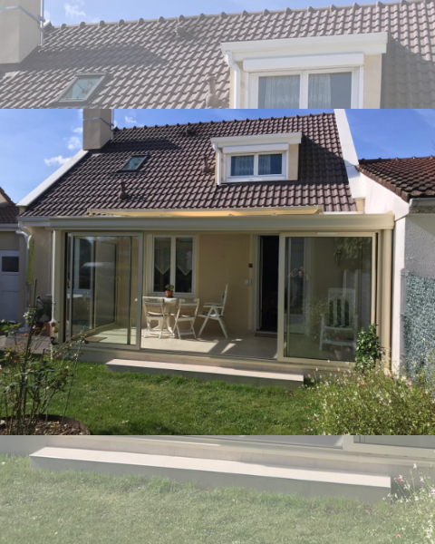 Véranda Sur mesure en aluminium réalisée dans notre atelier de Draveil en Essonne.